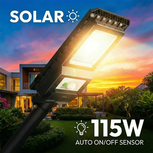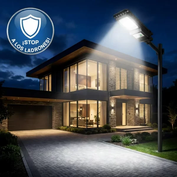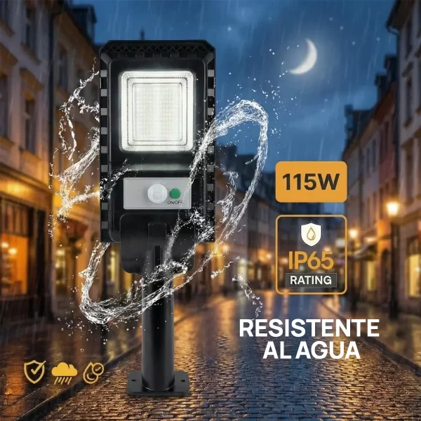 115W | 6500K – visibilidad clara para entrada, patio y caminos.